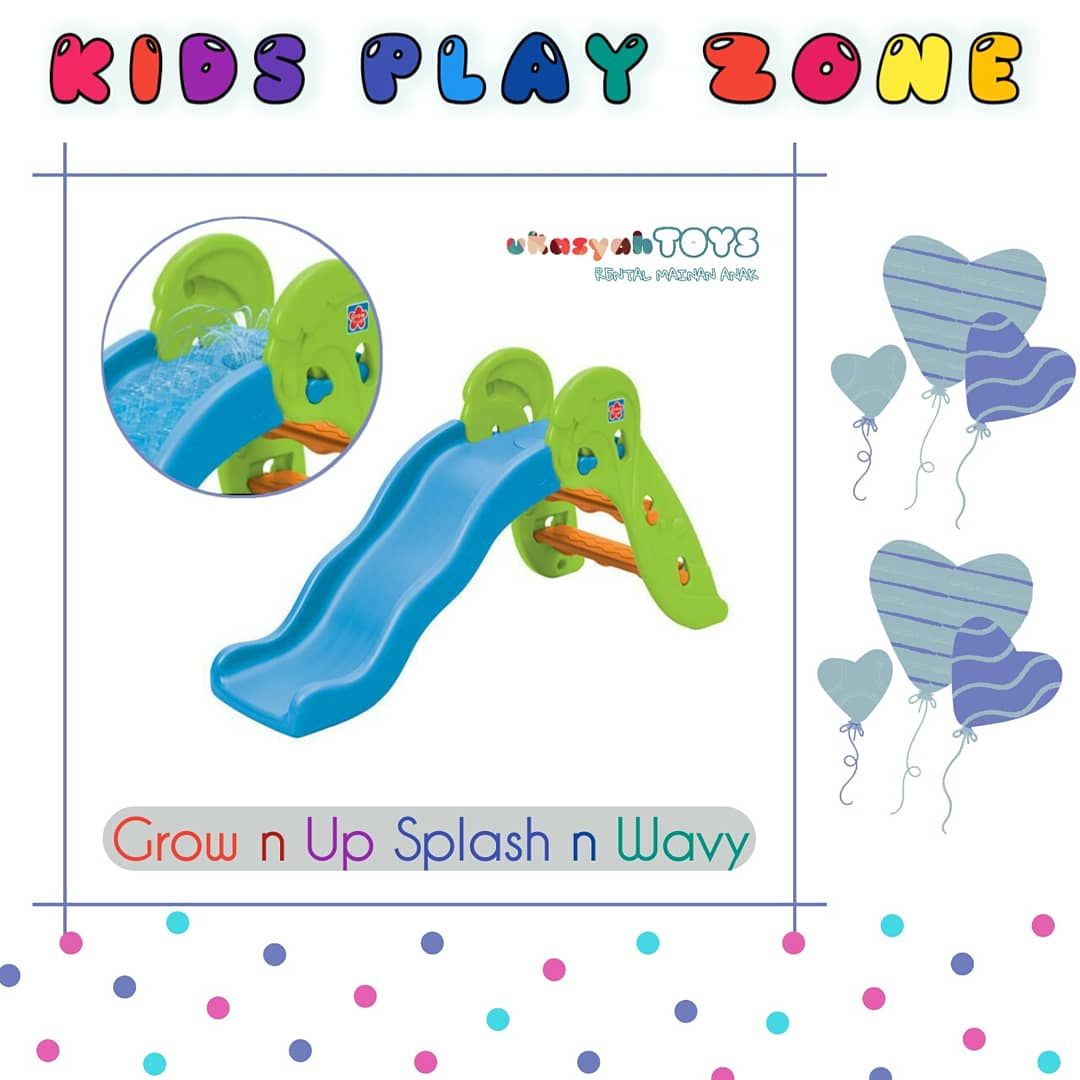 Grow n Up Splash N Wavy Slide merupakan produk pemenang dalam Parent Choicess Award kategori Fun Stuff. Perosotan yang dirancang khusus untuk balita, kini semakin menyenangkan dengan fitur molded cipratan air menjadikannya water slide. Seri Splash N Wavy Slide bahannya lebih tebal dan kokoh. Material plastic dilapisi UV protection dapat digunakan didalam maupun diluar ruangan. Splash n wavy slide juga dapat dikombinasikan dengan permainan kolam air hal ini dapat mendorong anak kecil untuk tidak takut air, bermain perosotan menjadi lebih aman karena ukurannya yang tidak terlalu tinggi sangat cocok untuk anak-anak kecil.